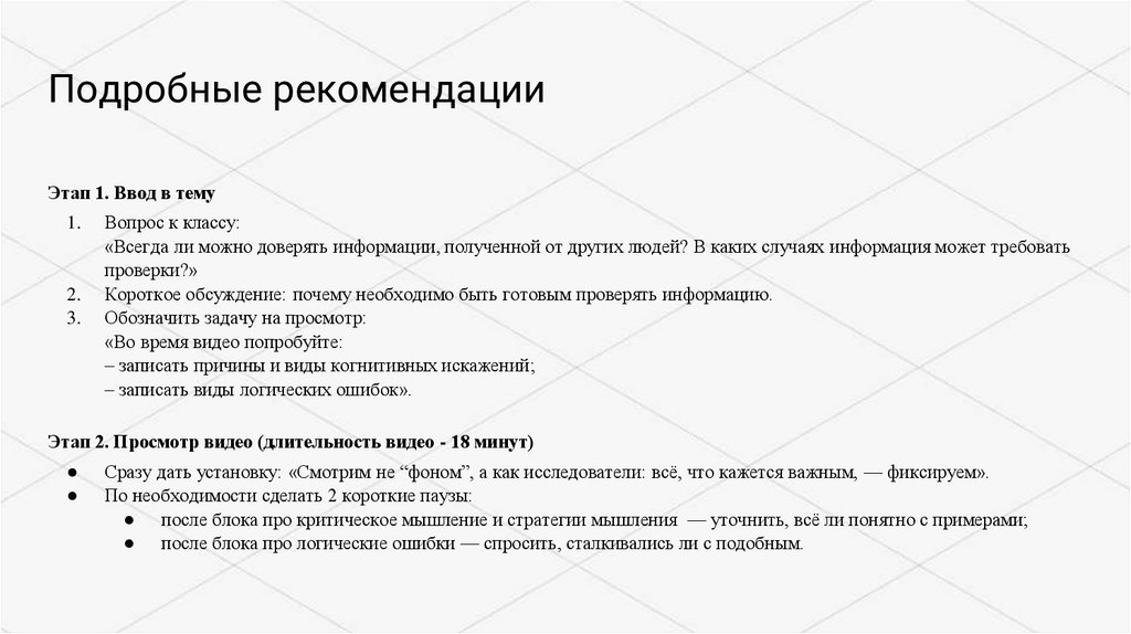 Подробные рекомендацииЭтап 1. Ввод в тему
