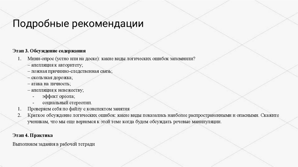 Подробные рекомендацииЭтап 3. Обсуждение содержания
