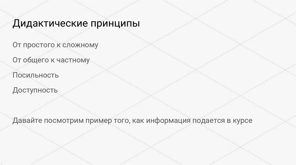Давайте посмотрим пример того, как информация подается в курсе