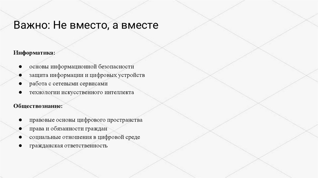 Важно: Не вместо, а вместеИнформатика:
