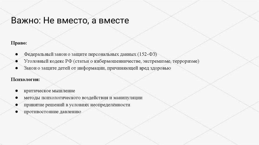 Важно: Не вместо, а вместеПраво: