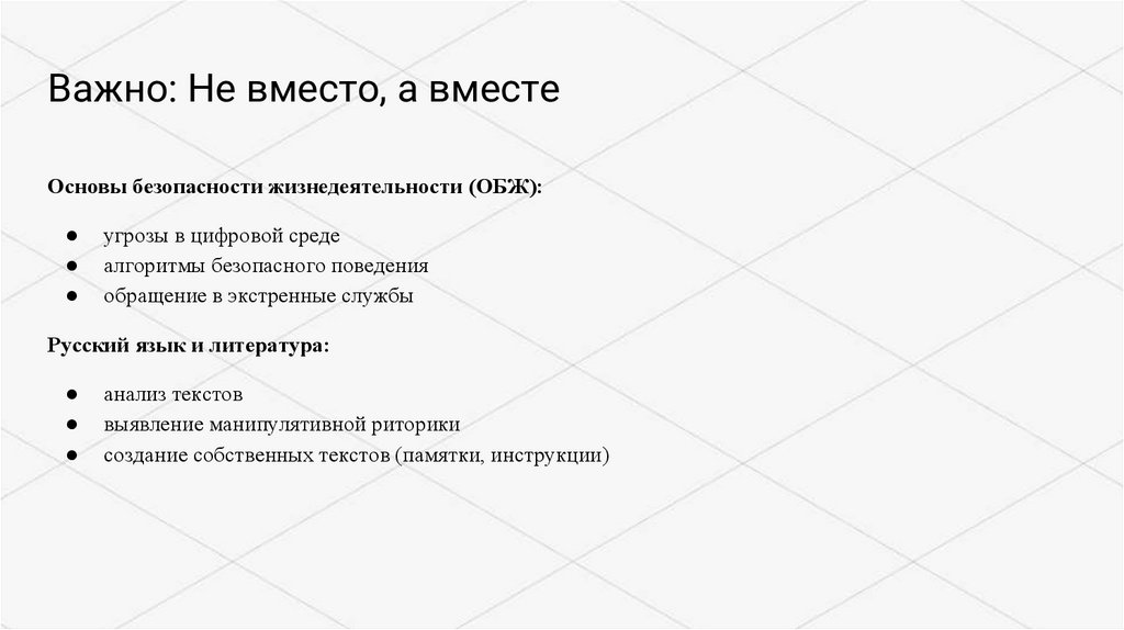 Важно: Не вместо, а вместеОсновы безопасности жизнедеятельности (ОБЖ):