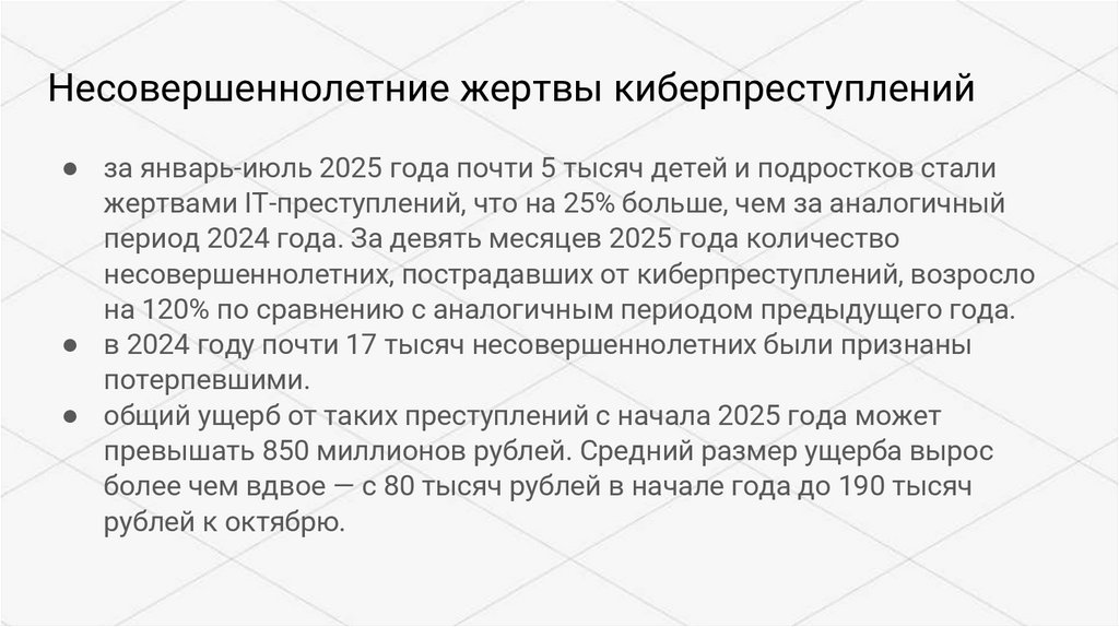 Несовершеннолетние жертвы киберпреступлений● за январь-июль 2025 года почти 5 тысяч детей и подростков стали