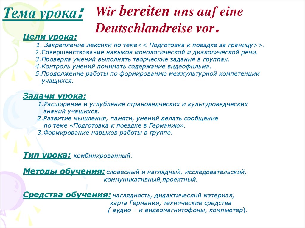 по теме «Подготовка к поездке в Германию».