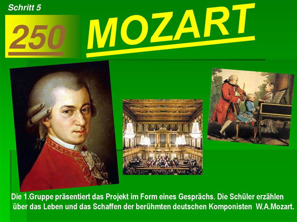 Die 1.Gruppe macht das Projekt <<Mozart – 250>>.