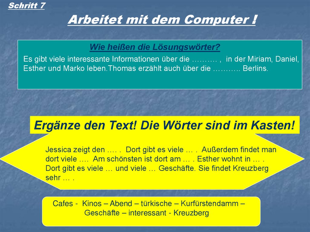 Ergänze den Text! Die Wörter sind im Kasten!