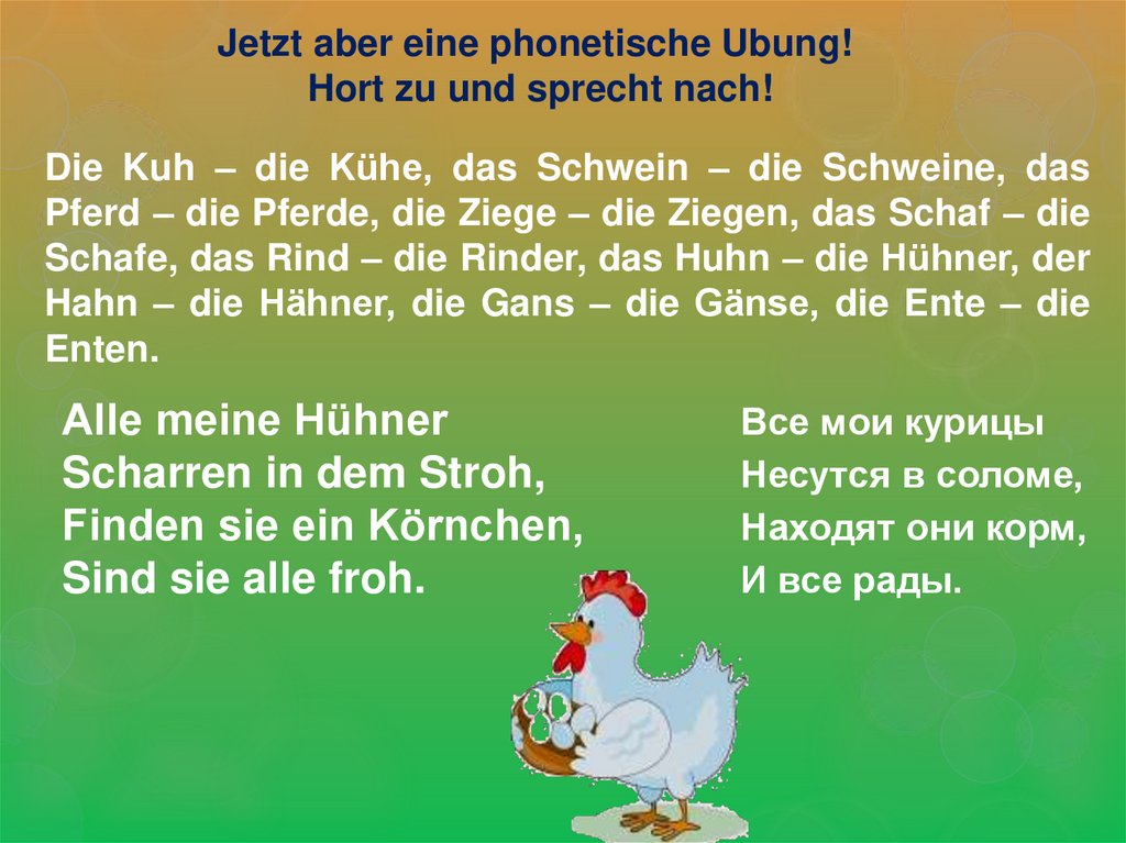 Jetzt aber eine phonetische Ubung!Hort zu und sprecht nach!