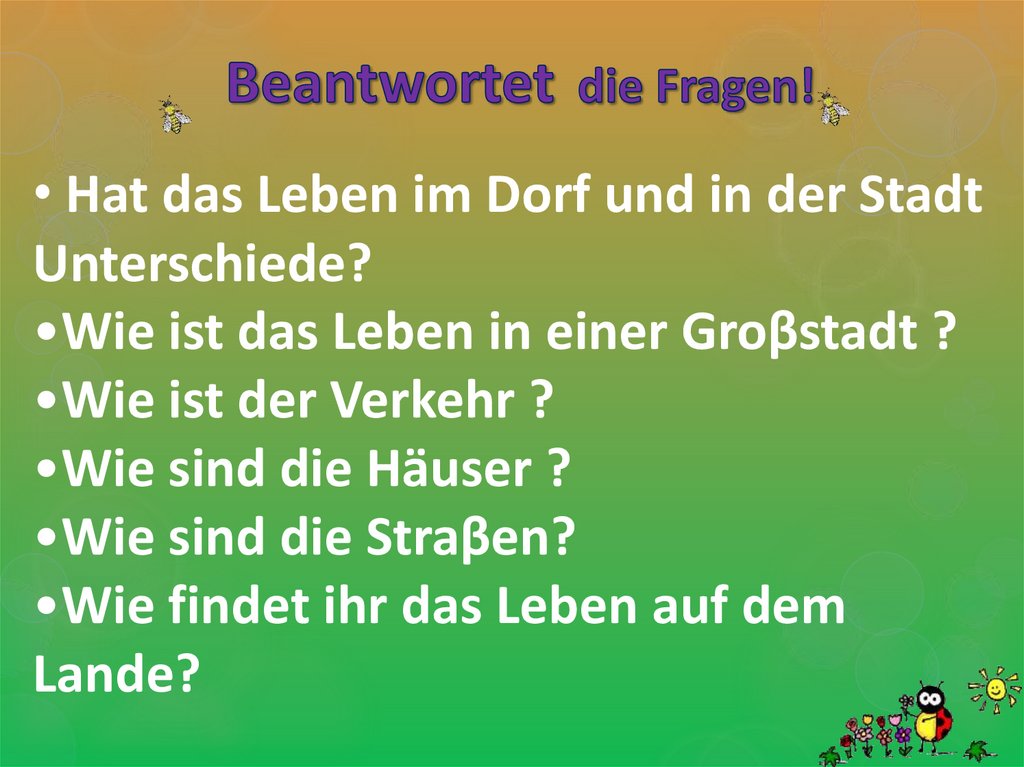 • Hat das Leben im Dorf und in der StadtUnterschiede?