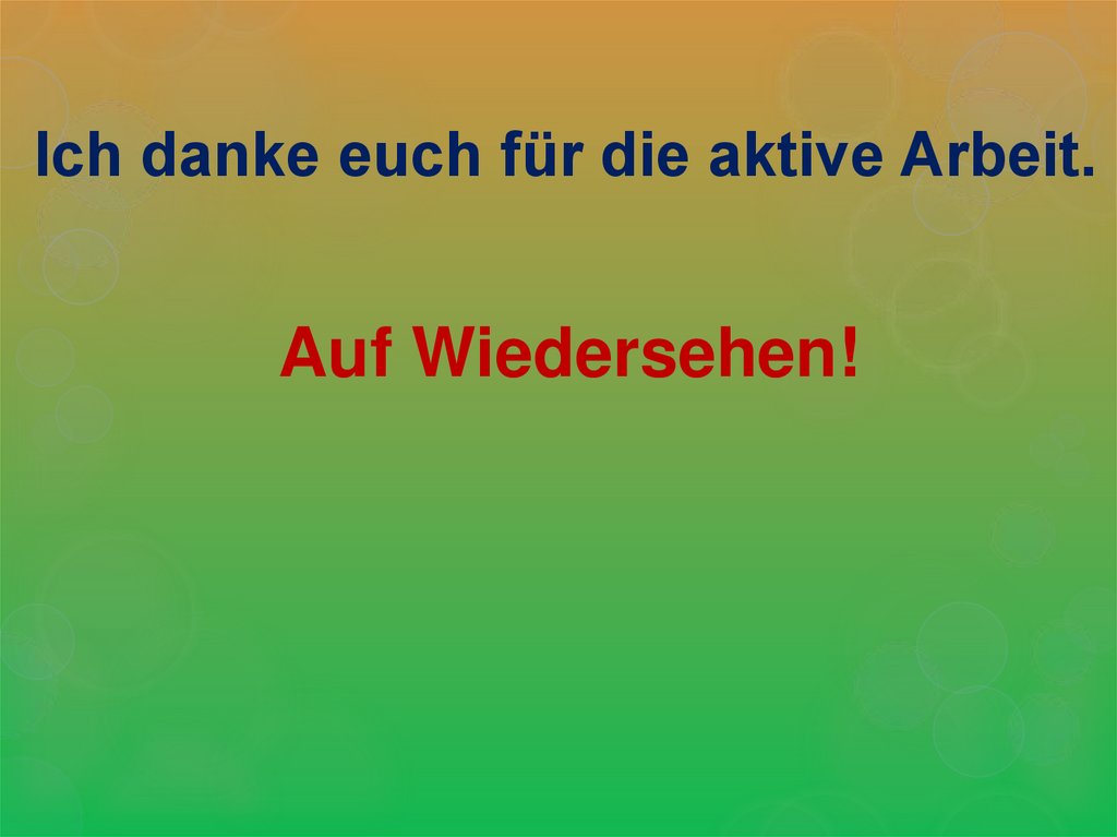 Ich danke euch für die aktive Arbeit.Auf Wiedersehen!