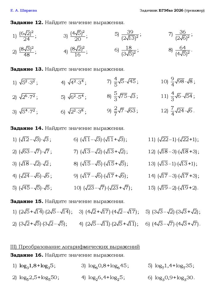 Е. А. ШиряеваЗадачник ЕГЭбаз 2026 (тренажер)