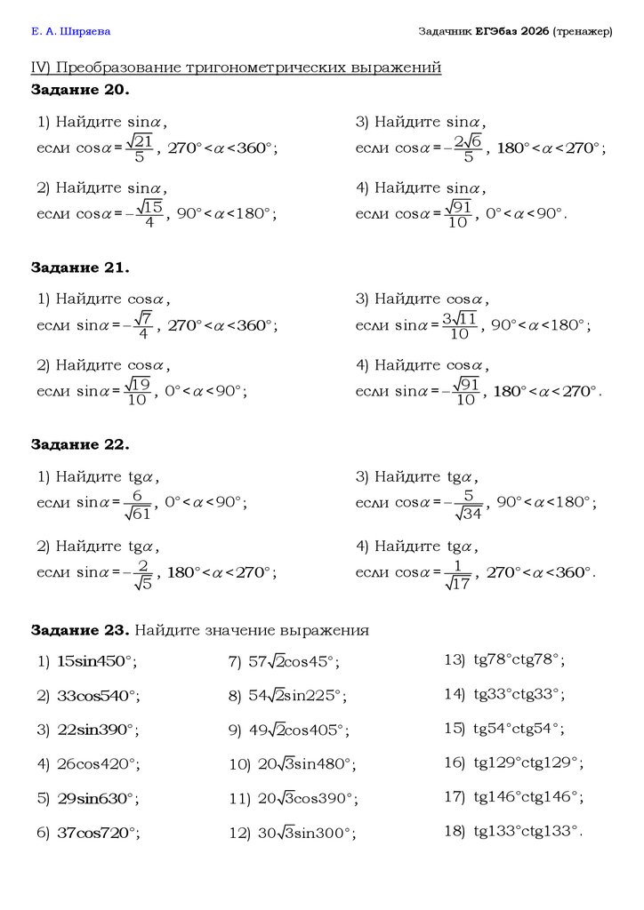 IV) Преобразование тригонометрических выражений