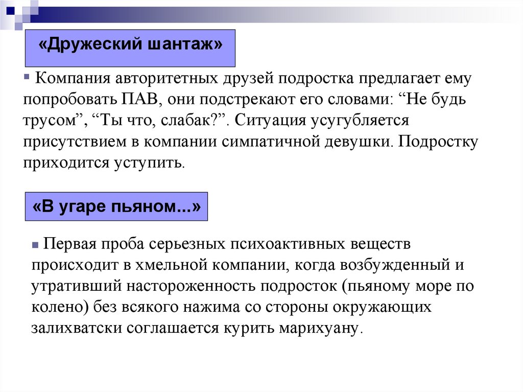 Субмиссивная мотивация – нежелание обидеть людей, предлагающих ПАВ,