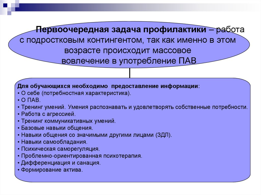 Первоочередная задача профилактики – работас подростковым контингентом, так как именно в этом