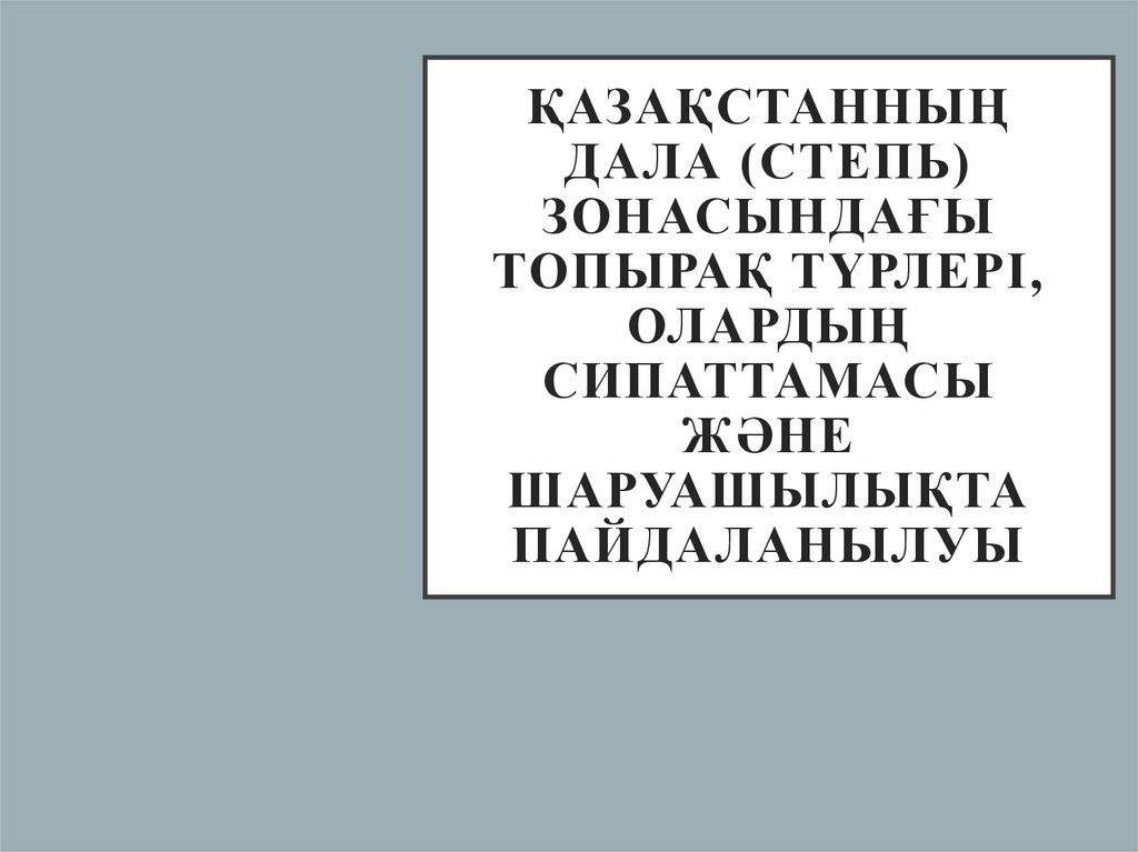1. Қазақстанның дала (степь) зонасындағы топырақ түрлері, олардың сипаттамасы және шаруашылықта пайдаланылуы