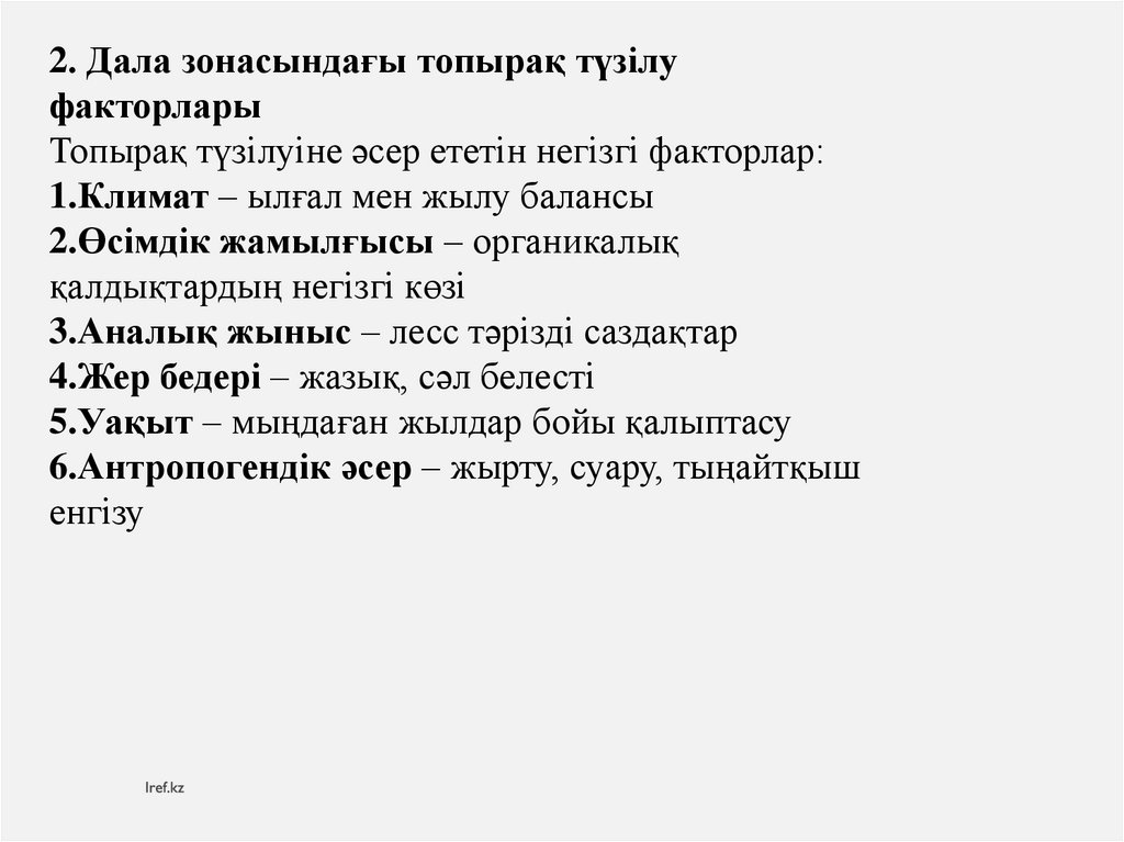 2. Дала зонасындағы топырақ түзілуфакторлары