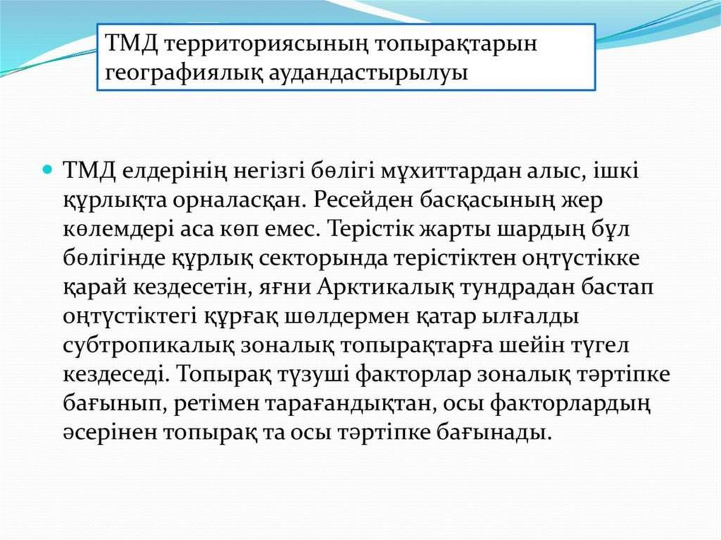 • Қазақстан территориясы үлкен болғандықтан, оның топырақ
