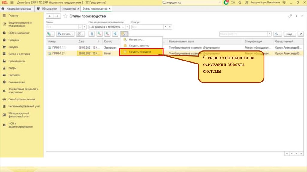 Ответственный сотрудник решает инцидент.На сотрудника зарегистрировали инцидент: