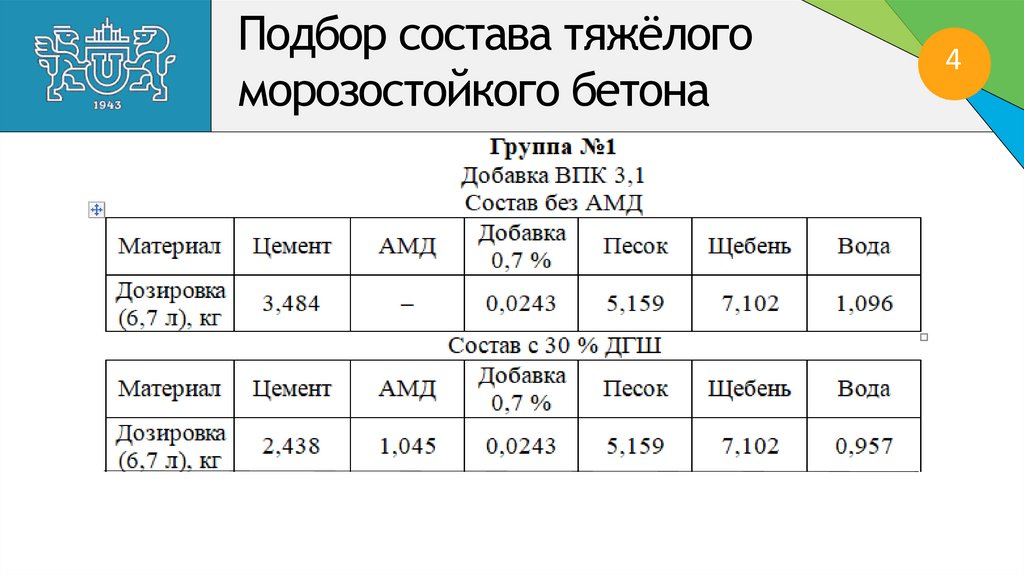 Подбор состава тяжёлогоморозостойкого бетона