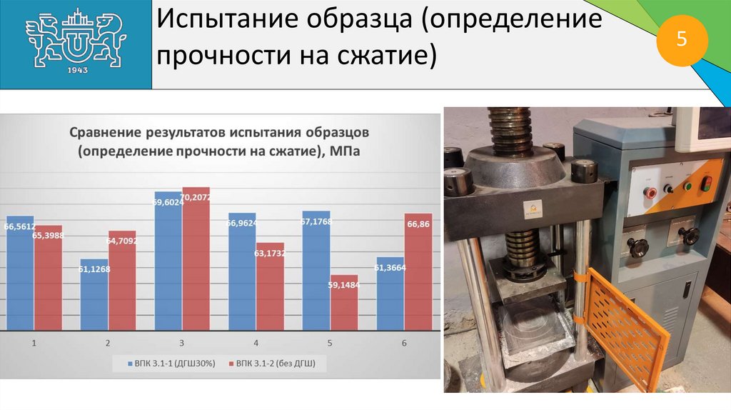 Испытание образца (определениепрочности на сжатие)