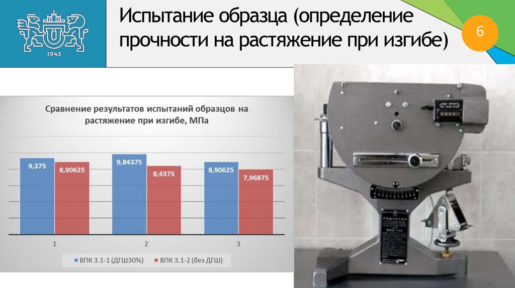 Испытание образца (определениепрочности на растяжение при изгибе)