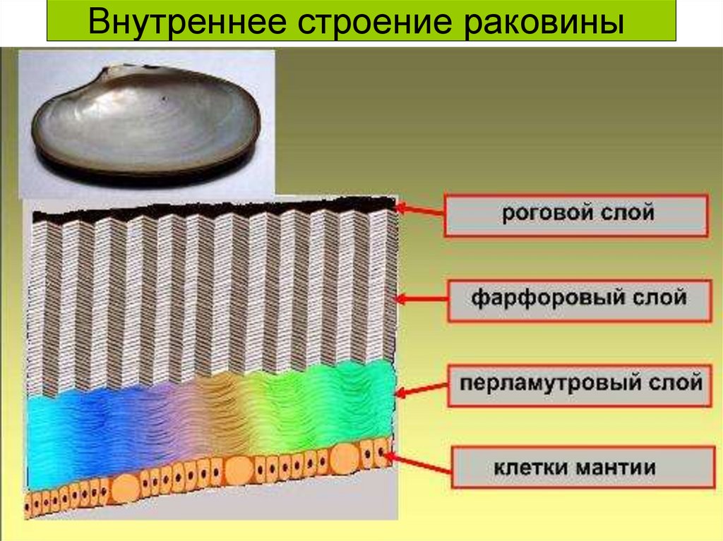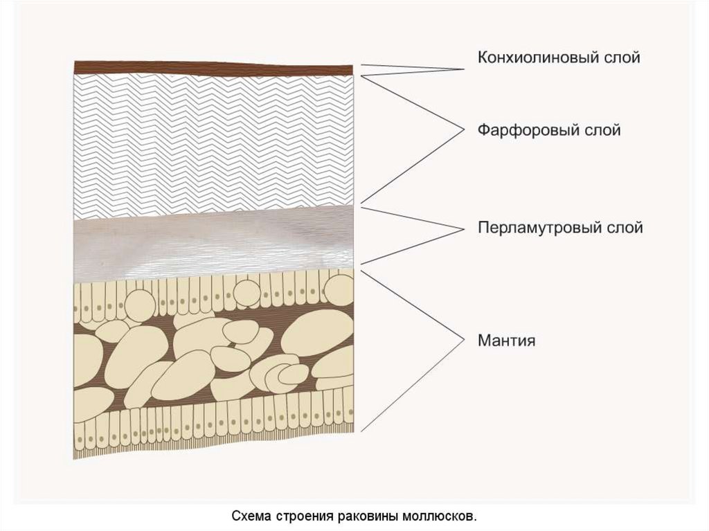 (фарфоровидный) и перламутровый (известковые листочки с прослойками
