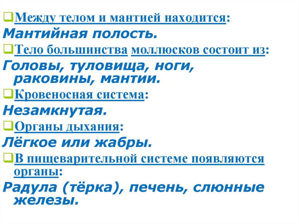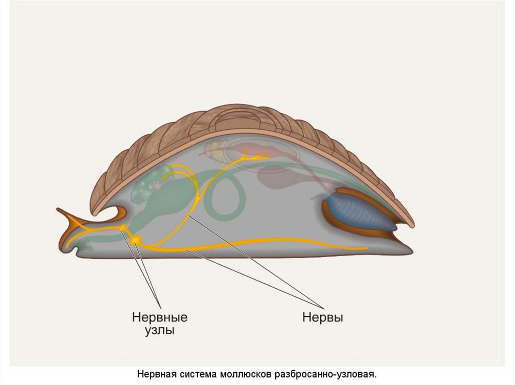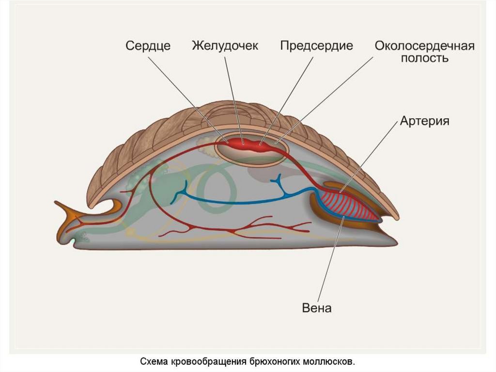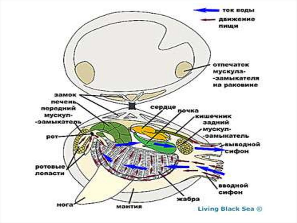 Между ней и телом – мантийная полость, в которой лежат жабры,