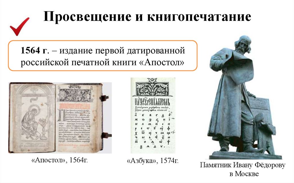 Просвещение и книгопечатание1564 г. – издание первой датированной