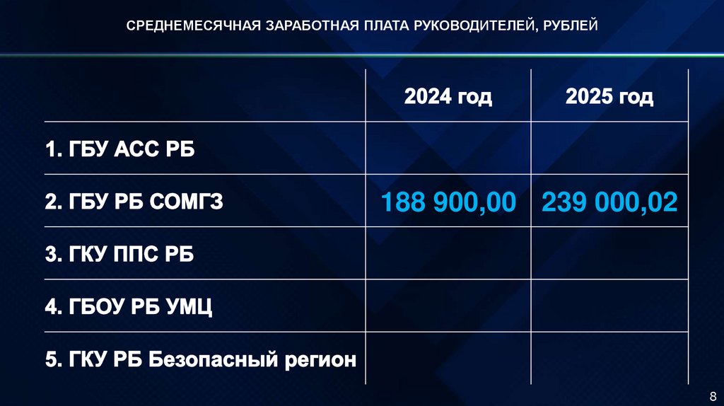 СРЕДНЕМЕСЯЧНАЯ ЗАРАБОТНАЯ ПЛАТА РУКОВОДИТЕЛЕЙ, РУБЛЕЙ188 900,00 239 000,02