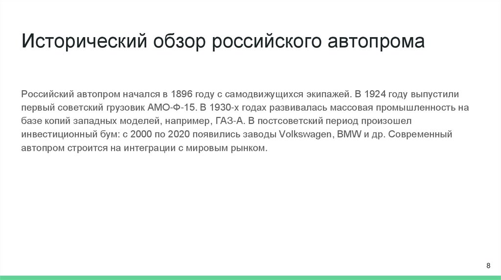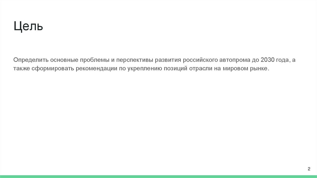 ЦельОпределить основные проблемы и перспективы развития российского автопрома до 2030 года, а