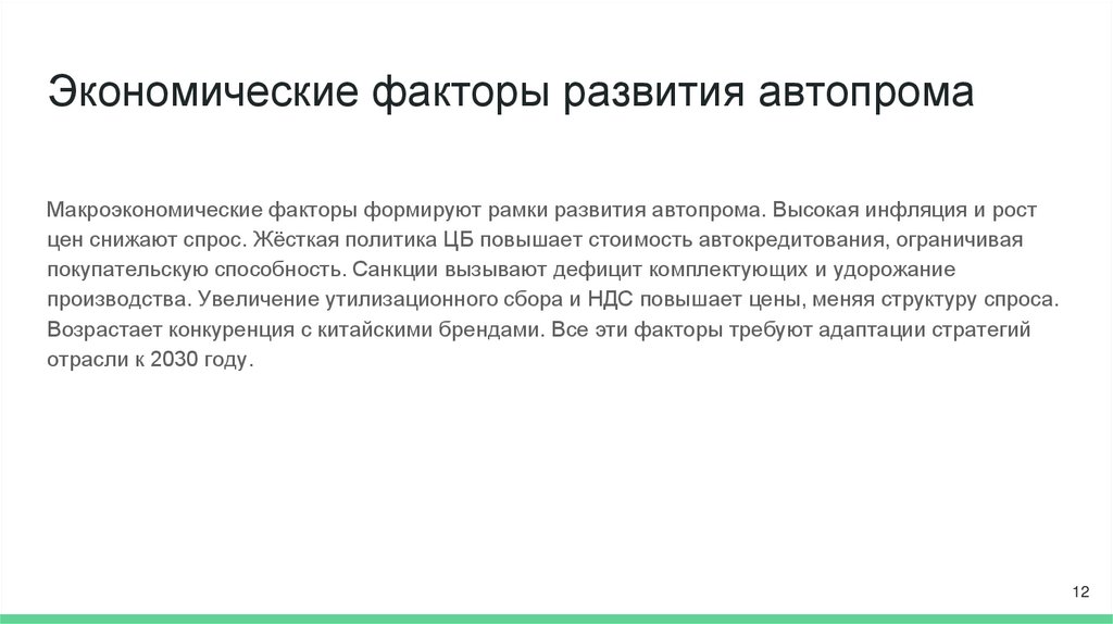 Экономические факторы развития автопромаМакроэкономические факторы формируют рамки развития автопрома. Высокая инфляция и рост