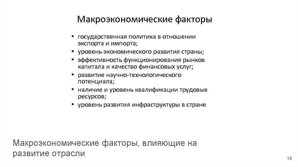 Макроэкономические факторы, влияющие наразвитие отрасли