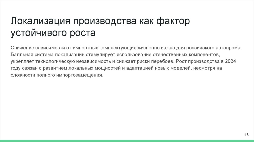 локализации, направленную на технологическую независимость и устойчивость. Важны рост