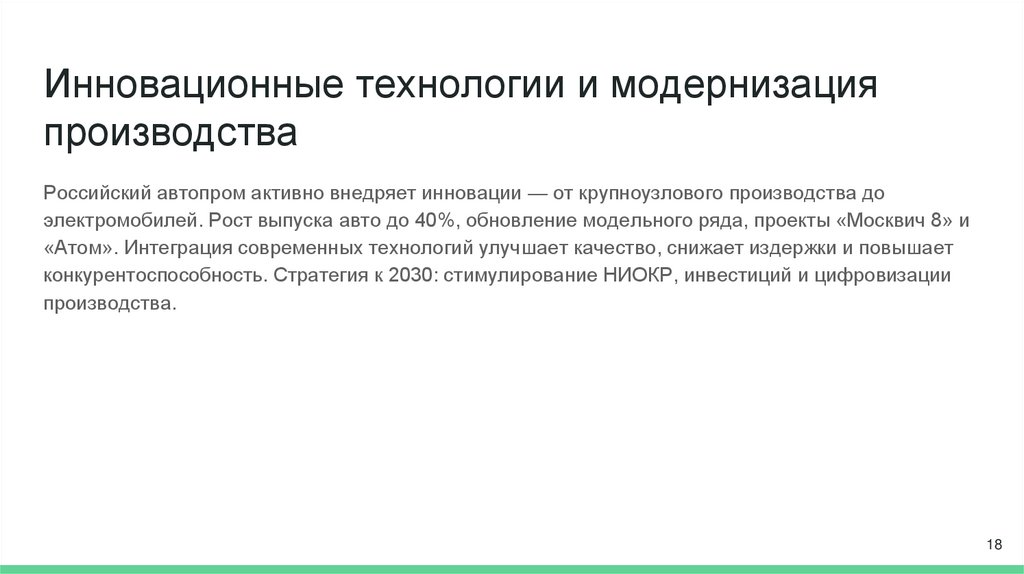 электромобилей. Рост выпуска авто до 40%, обновление модельного ряда, проекты «Москвич 8» и