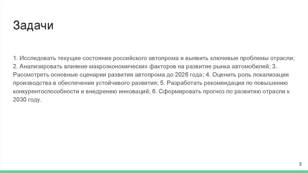 Задачи1. Исследовать текущее состояние российского автопрома и выявить ключевые проблемы отрасли;
