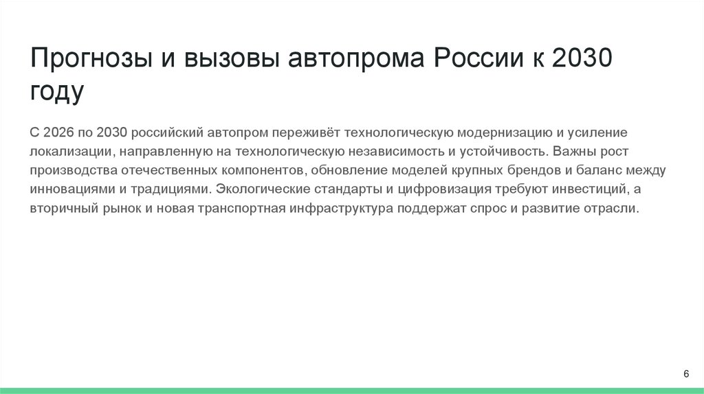 Прогнозы и вызовы автопрома России к 2030году