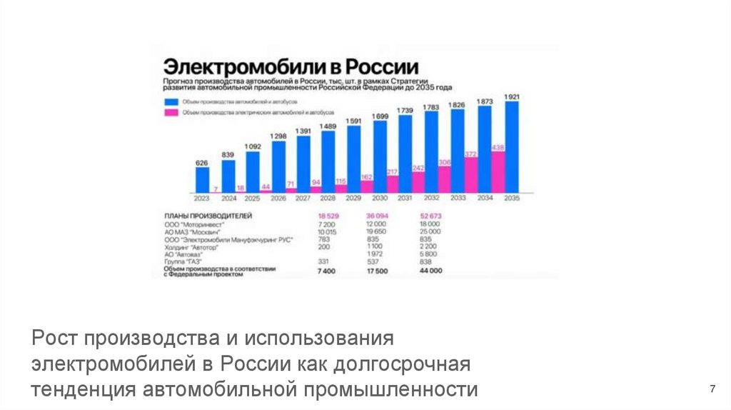 Рост производства и использованияэлектромобилей в России как долгосрочная