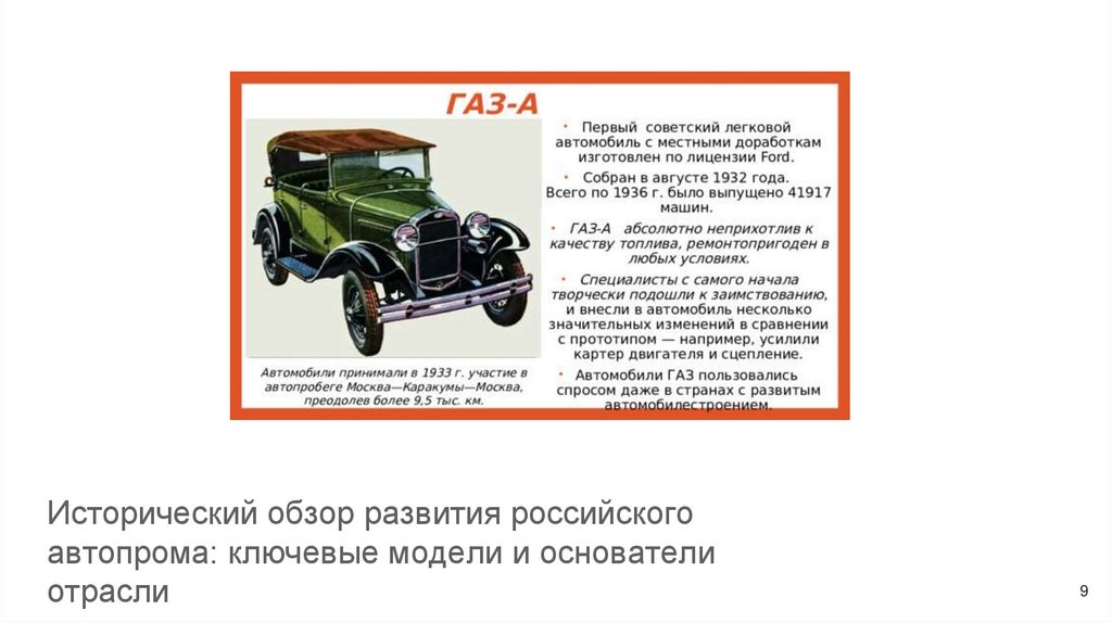 базе копий западных моделей, например, ГАЗ-А. В постсоветский период произошел