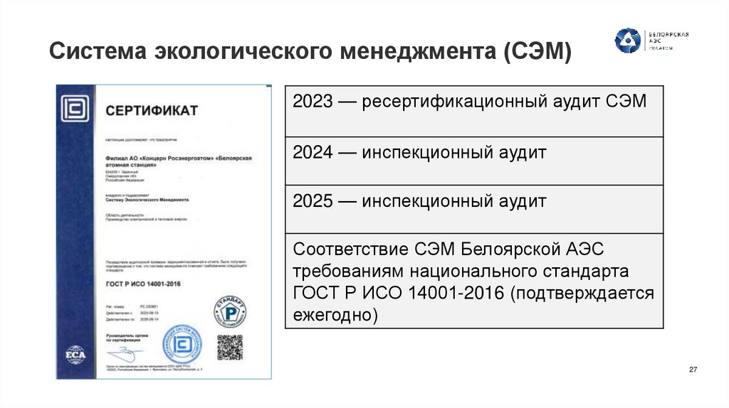 Система экологического менеджмента (СЭМ)2023 — ресертификационный аудит СЭМ