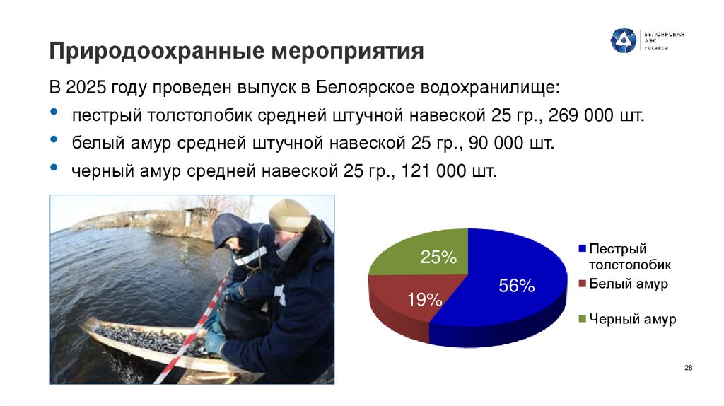 Природоохранные мероприятияВ 2025 году проведен выпуск в Белоярское водохранилище: