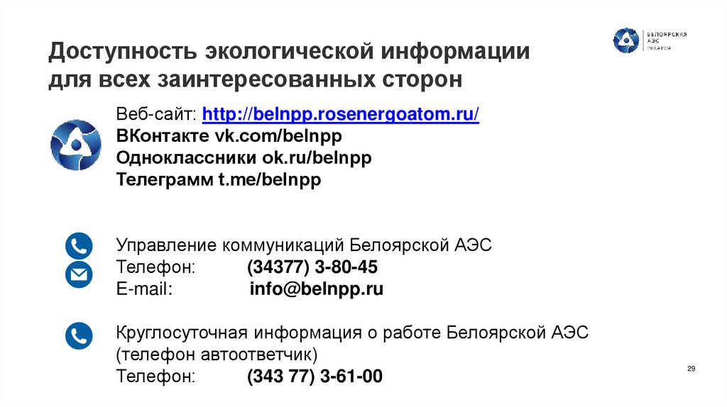 2. Белоярская АЭС обеспечивает информационную открытость результатов