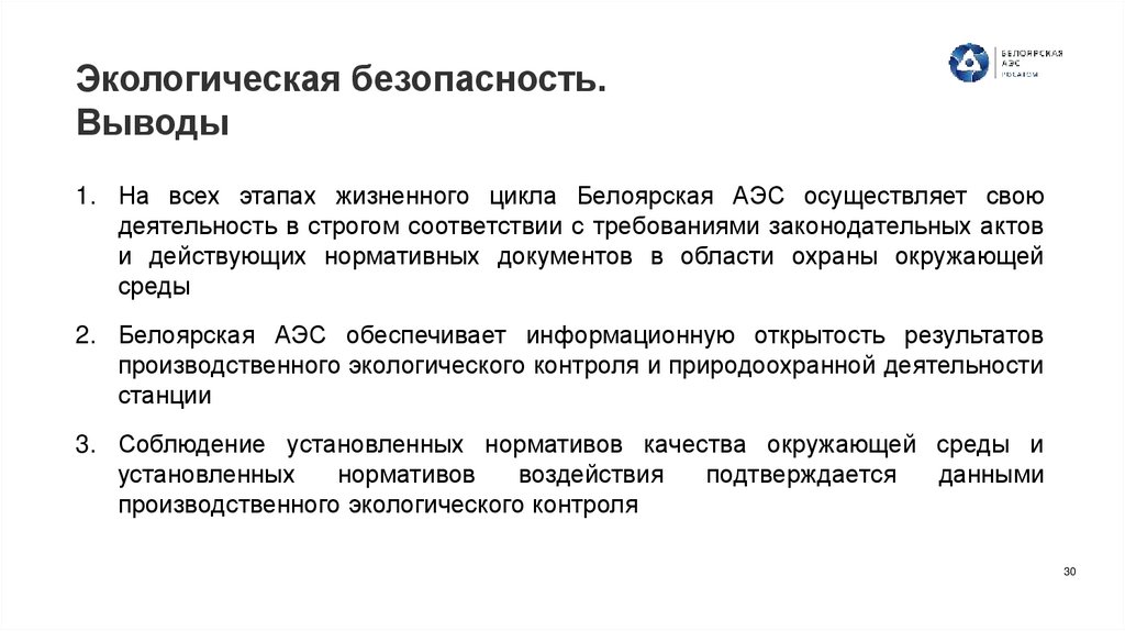 1. На всех этапах жизненного цикла Белоярская АЭС осуществляет свою
