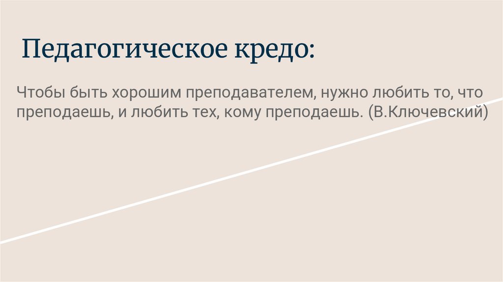 Педагогическое кредо:Чтобы быть хорошим преподавателем, нужно любить то, что