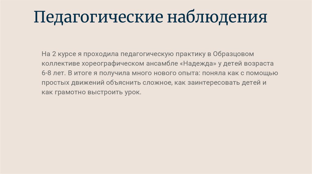 Педагогические наблюденияНа 2 курсе я проходила педагогическую практику в Образцовом