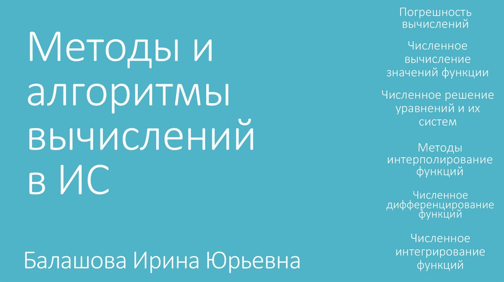 1. Методы и алгоритмы вычислений в ИС