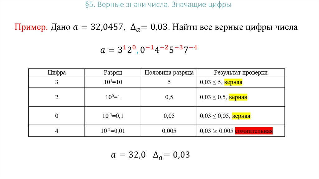 5. Верные знаки числа. Значащие цифры