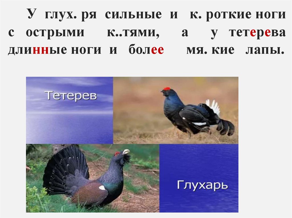 У глух. ря сильные и к. роткие ногис острыми к..тями, а у тетерева