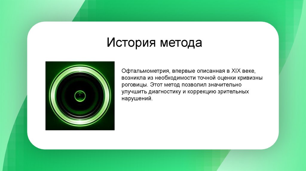 История методаОфтальмометрия, впервые описанная в XIX веке,
