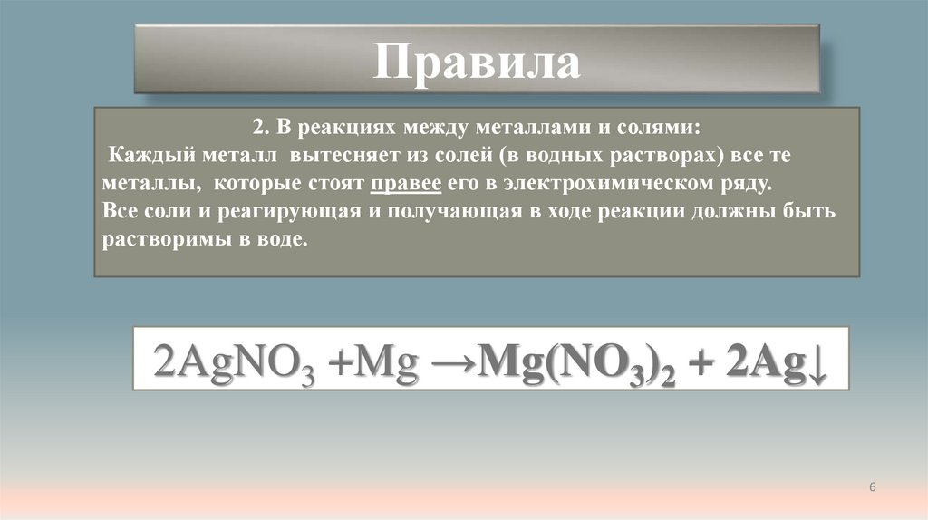 Правила2. В реакциях между металлами и солями: