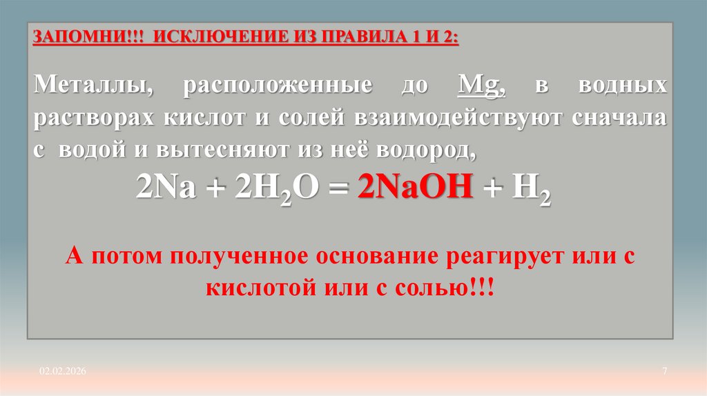 ЗАПОМНИ!!! ИСКЛЮЧЕНИЕ ИЗ ПРАВИЛА 1 И 2:Металлы, расположенные до Mg, в водных