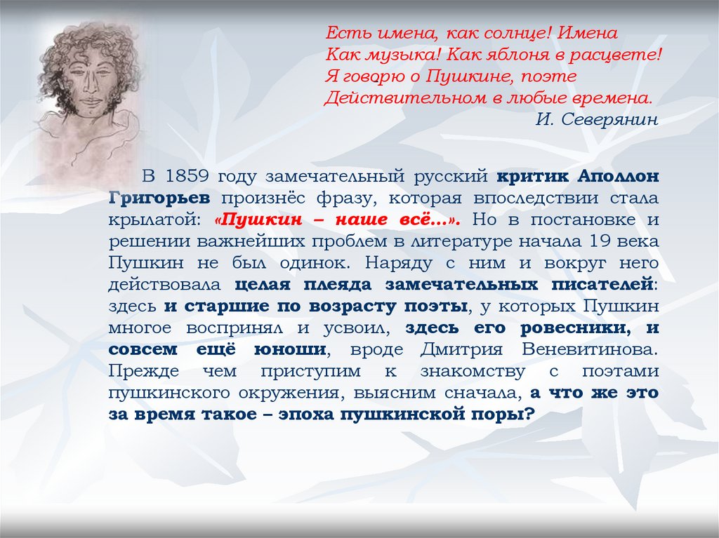 Пушкин не был одинок. Наряду с ним и вокруг него